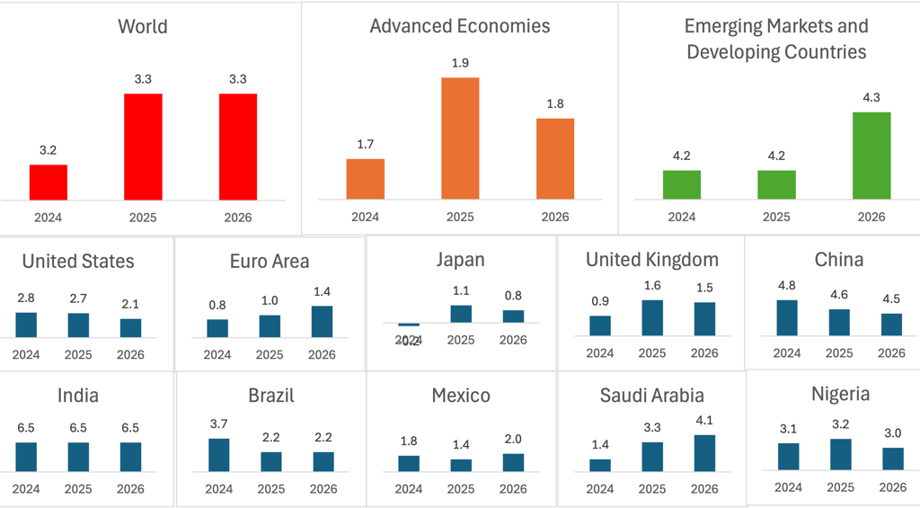 Divergent and Uncertain As we step into 2025, the global economic landscape continues to reflect both resilience and uncertainty. According to the IMF's latest World Economic Outlook (WEO), global growth is forecasted at 3.3% for both 2025 and 2026, a level below the historical average of 3.7% (2000–2019). While inflation shows signs of easing, several regions and economies face unique challenges that could shape the global narrative. Here's an analysis by region, alongside a focused perspective on Mexico.